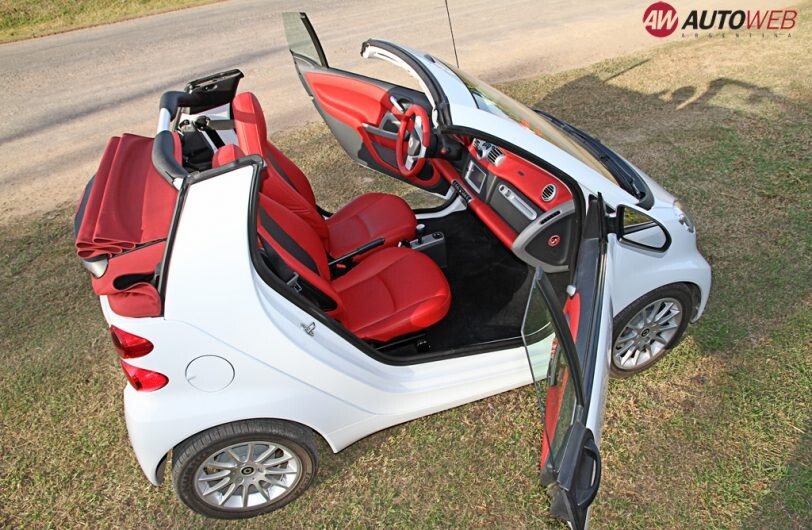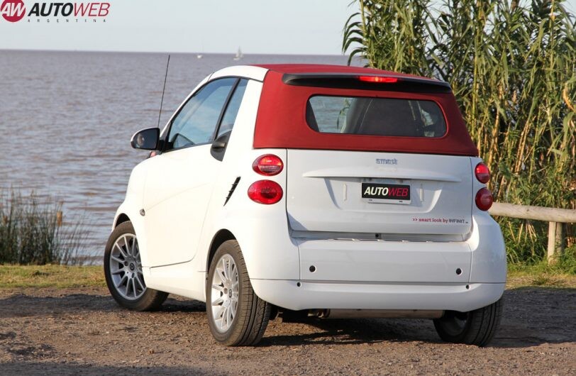 Aun con la capota cerrada, el interior del Smart es luminoso y tiene espejos grandes que mejoran la limitada visibilidad posterior. En caminos desparejos no se sienten ruiditos molestos pero el motor (ubicado sobre el eje trasero) se deja escuchar bastante, aunque con un sonido muy agradable.
