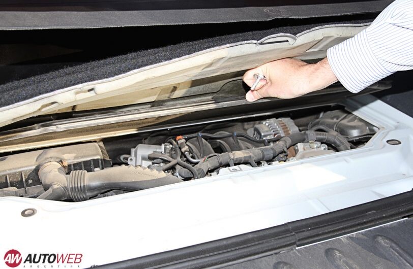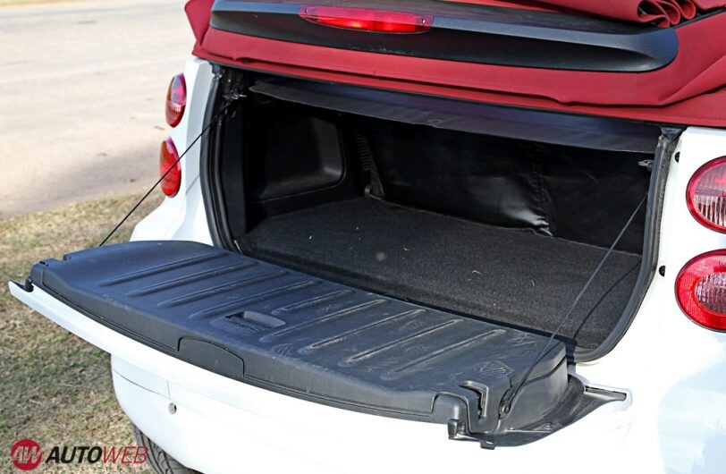 Debajo del pequeño capot delantero (que es de plástico como todos los paneles de la carrocería) se ubican unos pocos componentes y las bocas para reabastecer fluidos. Al tener el motor en una posición muy baja, el baúl está detrás y ofrece una capacidad de apenas 220 litros (se puede ampliar a 340), que para un auto netamente urbano para dos ocupantes no está tan mal.