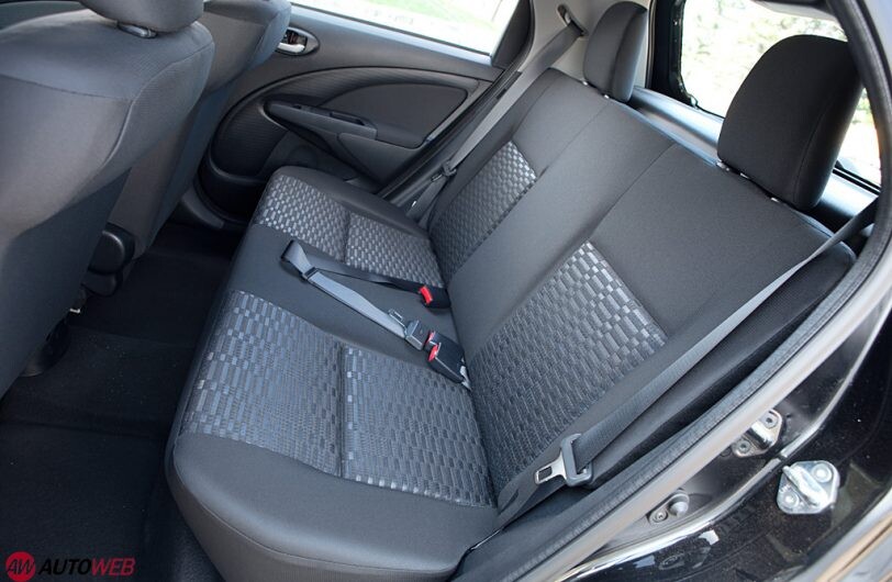 Una de las bondades del Etios es su espacio interior, algo que evidencian las plazas traseras, donde hay lugar de sobra para las piernas y las cabezas; nadie rozará el techo. Además, el piso de la quinta plaza es prácticamente plano, mejorando la comodidad de quien se siente allí. La limitación de ese lugar radica en la acotada anchura de la carrocería (1,69 m).