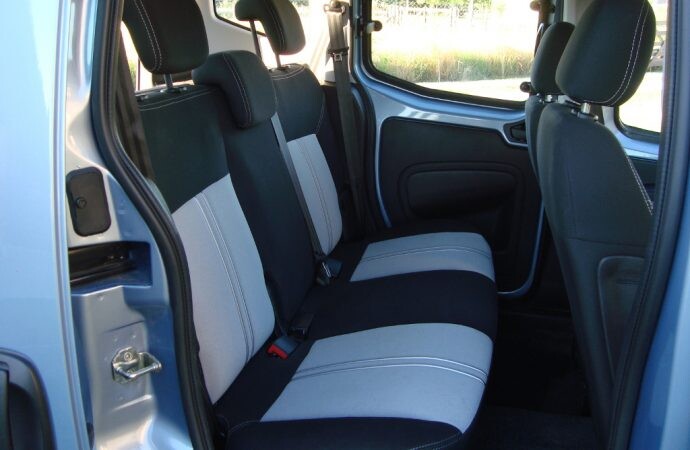 Las plazas traseras, a las cuales se accede mediante puertas de apertura deslizable, poseen apoyacabezas y cinturones inerciales para todos los ocupantes, además de ganchos Isofix y un correcto espacio para tres pasajeros.