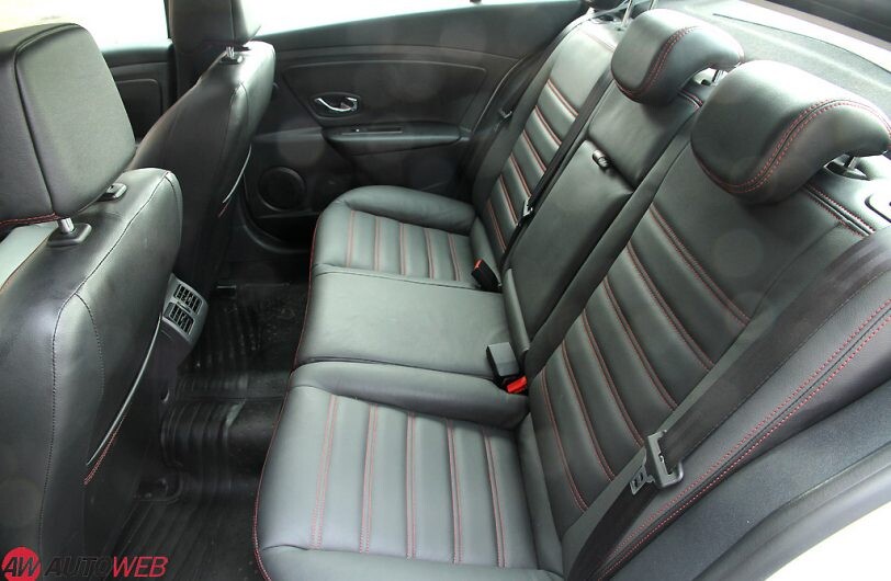 Atrás el Fluence es uno de los más cómodos entre los sedanes del segmento C, con espacio de sobra a lo largo y a lo ancho, aunque con la quinta plaza no tan amigable y una altura de techo algo baja (por la curvatura del mismo).