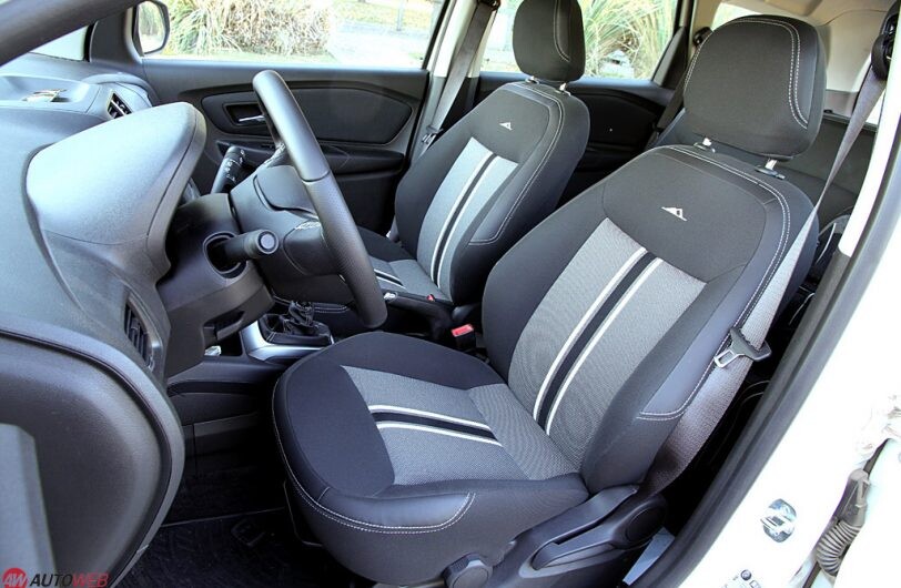 Adentro son muy pocas las diferencias que podemos encontrar con los demás Spin. En principio desaparecen las tonalidades claras del panel y las contrapuertas; en este caso el color predominante es el negro y los tapizados –textiles– lucen un estampado especial, incluyendo la identificación del modelo. Buena decisión la de Chevrolet de evitar los falsos cueros de este segmento, por lo general calurosos y de mala calidad…