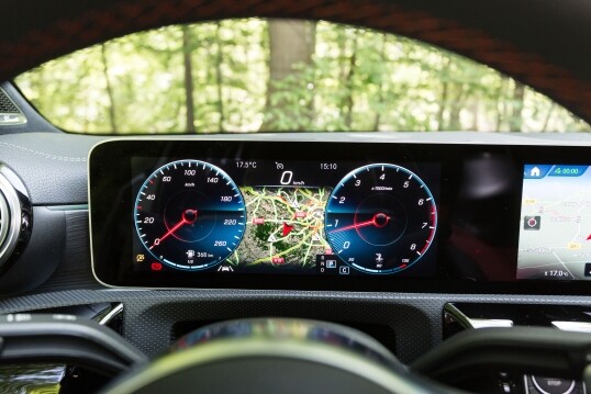 Por dentro recurre al diseño visto en los sedanes grandes de la marca alemana, con una misma pieza formada por el instrumental y la pantalla central (es el primer Mercedes con pantalla táctil), que puede ser de 7 o 10 pulgadas. Las pantallas también se pueden manejar por los paneles táctiles presenten en el volante o entre los asientos.