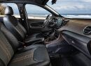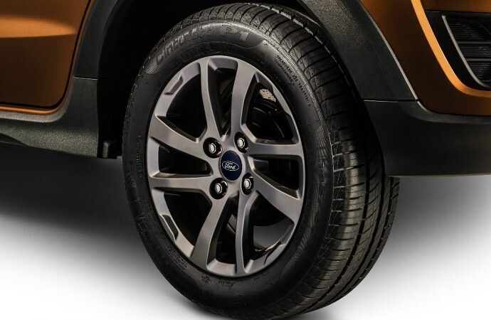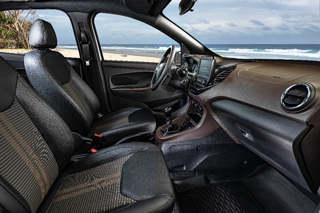 Este Ka aplica a su carrocería toda la bijouterie que debe tener un “pseudo offroad”: molduras oscuras en pasarruedas y zócalos, barras de techo, paragolpes con detalles símil aluminio, muchos detalles en negro y por supuesto un despeje más elevado, que en este caso es de 18,8 centímetros.