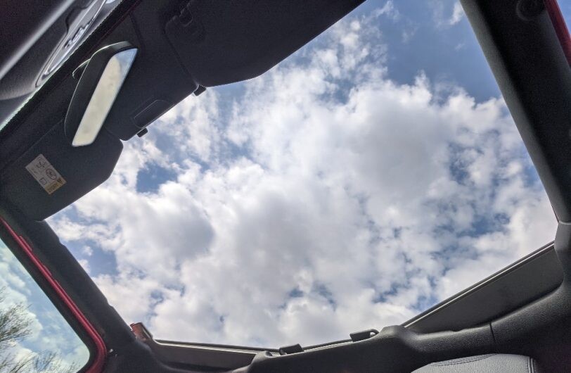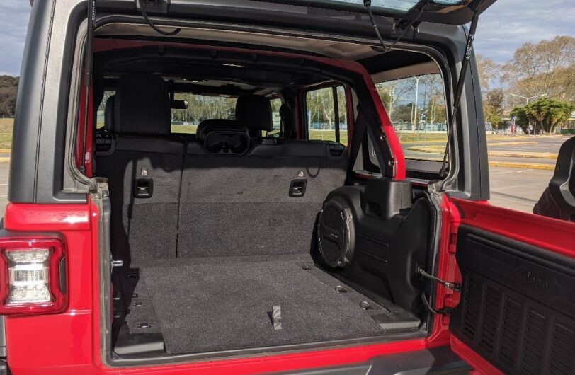 Sin embargo, Jeep también pensó en vagos como yo (que seguro tampoco iba a poder dejar todo como estaba): ahora la parte delantera del techo (dividida en dos sectores de un plástico liviano) se quita destrabando sin fuerza y cabe en el baúl. Ah, también está la posibilidad de pedirlo con esta sección en lona.