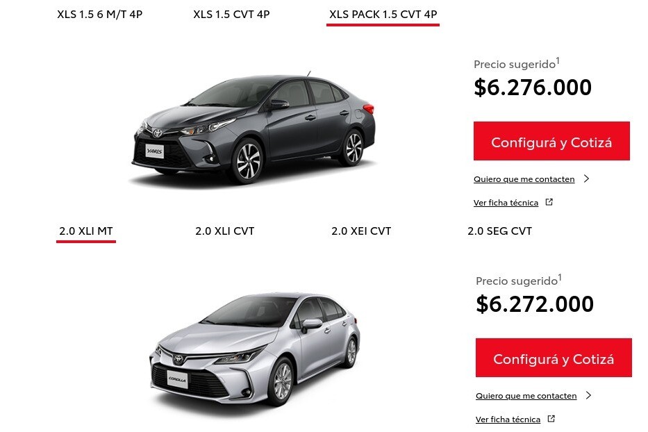 La versión full del sedán compacto vale, de lista, 6.276.000 pesos, mientras que la base del Corolla, cuesta 6.272.000, solo 4.000 pesos menos.