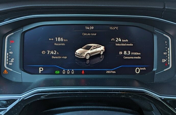 El motor de este Highline es la adopción del 1.0 turbo que ya conocimos en Nivus, T-Cross y Polo. Ofrece prestaciones modestas, pero consumos muy bajos a velocidades constantes, algo que no repite en los traslados en ciudad.