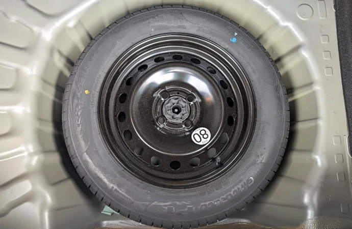 Lo insólito, sabiendo que las titulares son de chapa, es que por debajo hay un auxilio temporal (por suerte no es de los finitos) con llanta de 15″.
