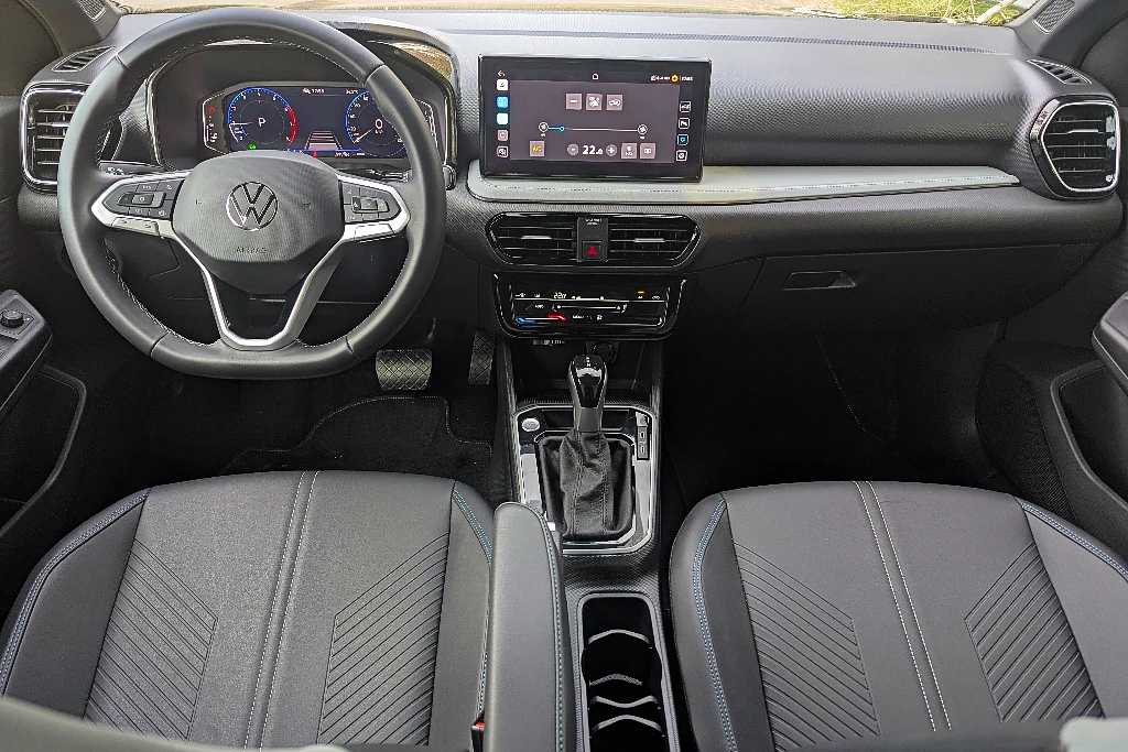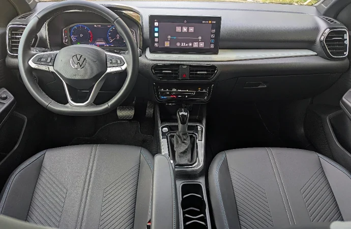 Adentro, el diseño también es nuevo, otra cosa que lo diferencia de Polo, Nivus y Virtus, que comparten todo el entorno del conductor.
