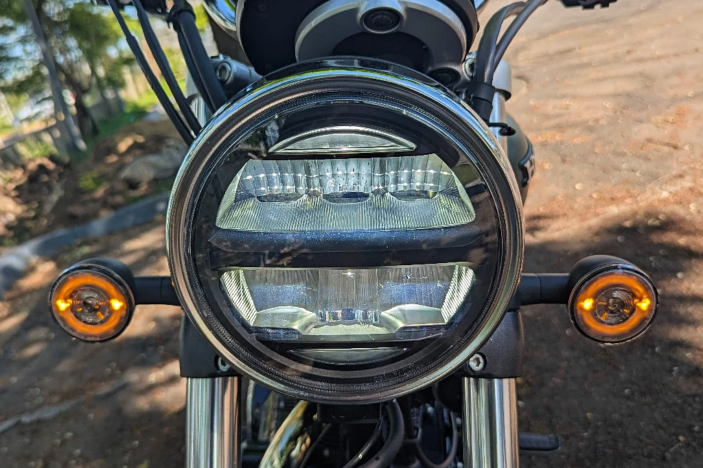 Fabricada en India, la H’ness hace gala de una muy buena terminación, tanto por la calidad de materiales como por la percepción que ofrece cada uno. Quizás lo único reprochable sean los neumáticos MRF (también de origen indio, de 19″ adelante y 17″ atrás) con una reputación que, hasta ahora, es una incógnita.