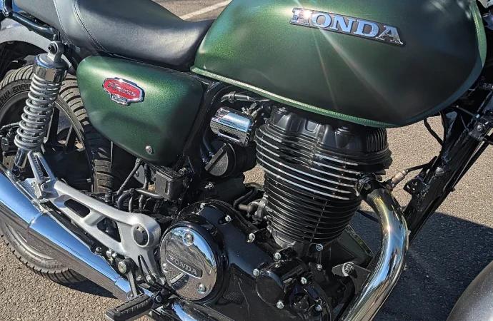 Las líneas evocan las que mostraron las primeras CB de fines de los setenta: hay una gran presencia de cromados en suspensiones, escape, insignias, faros, e incluso en los espejos (de buen diseño, pero con un campo de visión limitado) y superficies metalizadas, como la pintura que cubre el amplio tanque de combustible (otro toque retro) o los guardabarros.