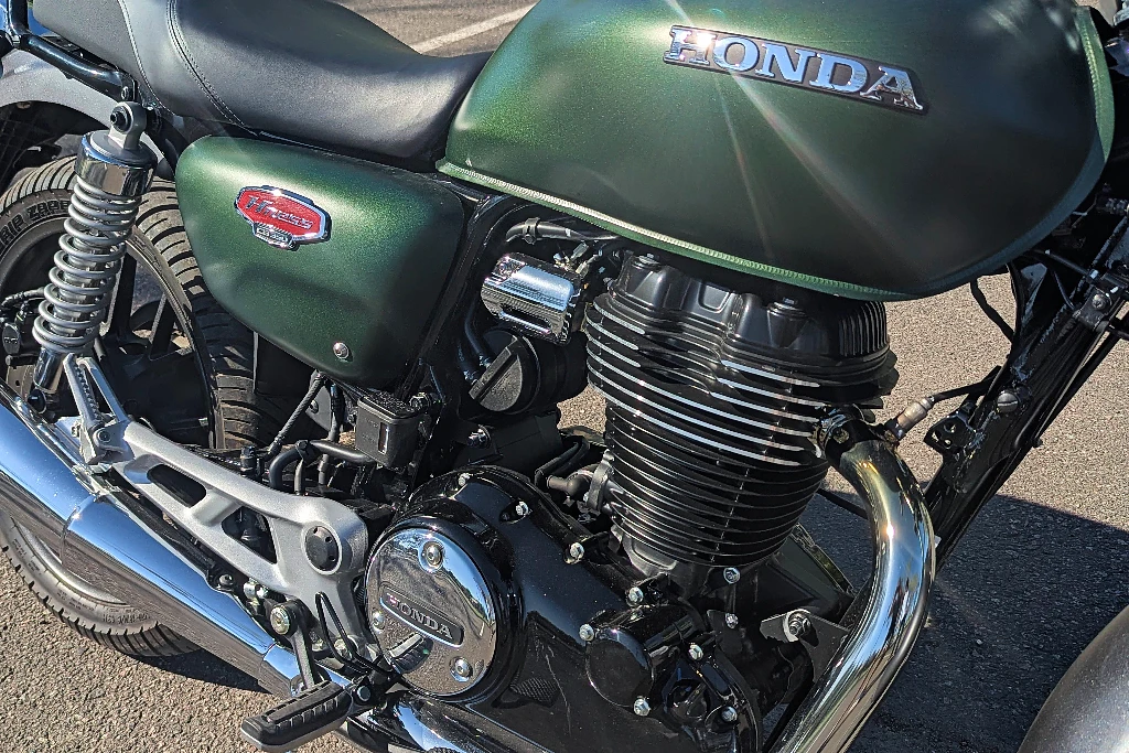 El corazón de esta Honda es un motor monocilíndrico de 348 cc, que entrega 21 CV y 30 Nm de torque. Asociado a una caja de cinco marchas, no busca prestaciones deportivas ni aceleraciones bruscas: su terreno es el del disfrute, con una conducción suave y placentera, ofreciendo mínimas vibraciones (incluso a altas velocidades).