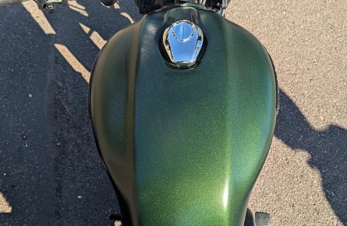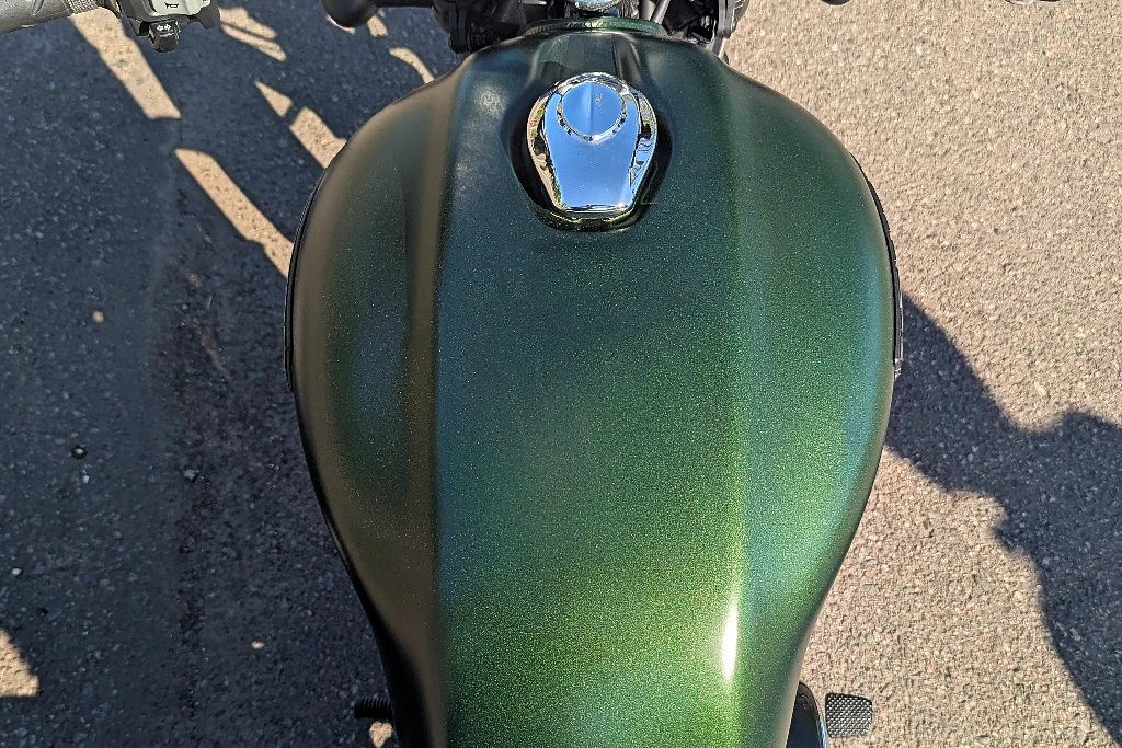 Acompañan unas llantas de amplios rayos, un tablero circular con un mix de agujas e indicadores digitales y unos intermitentes bien a la vista. Además del verde militar de nuestra unidad, está disponible rojo o negro.