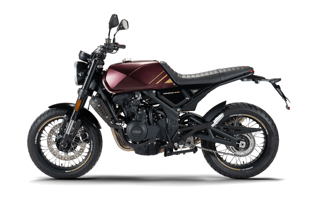 Esta última repite el motor de 486 cc de la Motori, pero con 44 CV. Viene con caja de seis marchas, suspensión KYB, frenos ABS Bosch y discos JJuan, neumáticos Pirelli, faro full led, tablero digital y llantas de 17″.