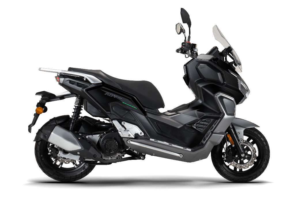 El segundo lleva un 278 cc de 25 CV y caja CVT y suma suspensiones KYB, frenos ABS, calienta puños y tablero TFT de 6″.