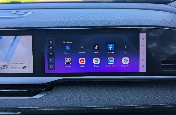 Sin embargo, lo que más destaca puertas adentro es la inclusión de la tercera pantalla, ubicada delante del pasajero y con funciones similares a la central, pero sumando la posibilidad de ver videos. Como cuenta con una tecnología para que el conductor no pueda visualizarla, no hay riesgos de distracciones.