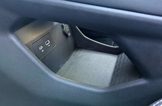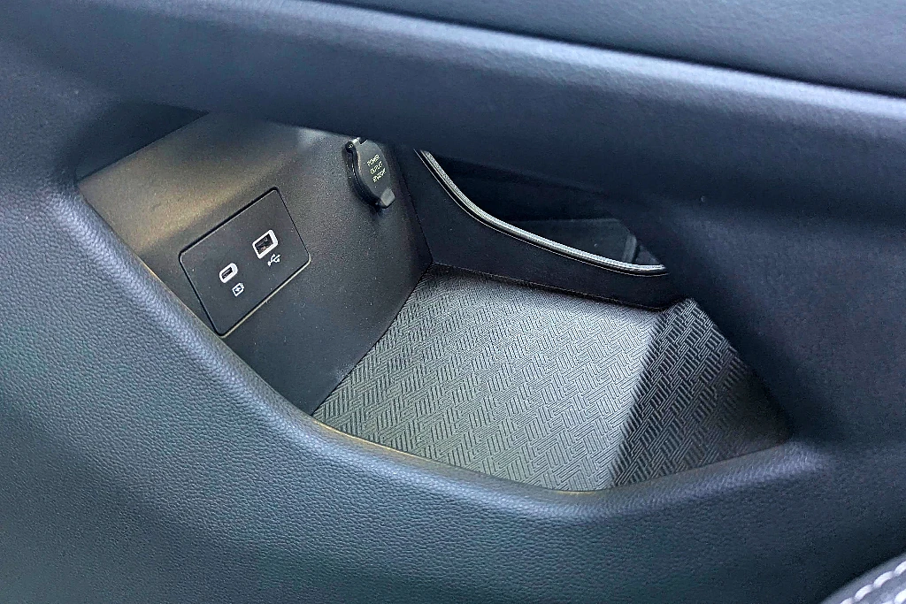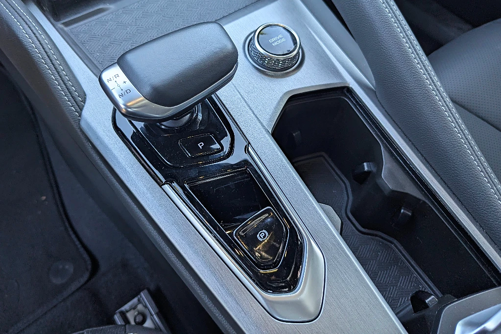 La selectora es tradicional (en su diseño, no en su funcionamiento, algo que veremos luego) y hay una pequeña rueda para seleccionar los diferentes modos de manejo. Por detrás, aparece una muy generosa guantera, que complementa la bandeja que está por debajo de la consola entre asientos.