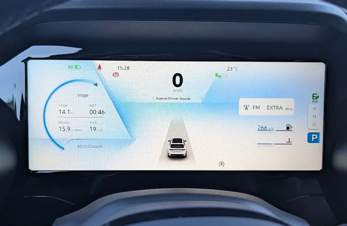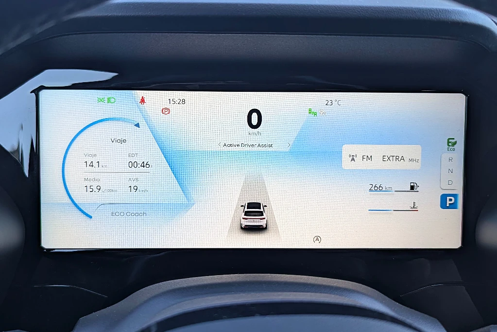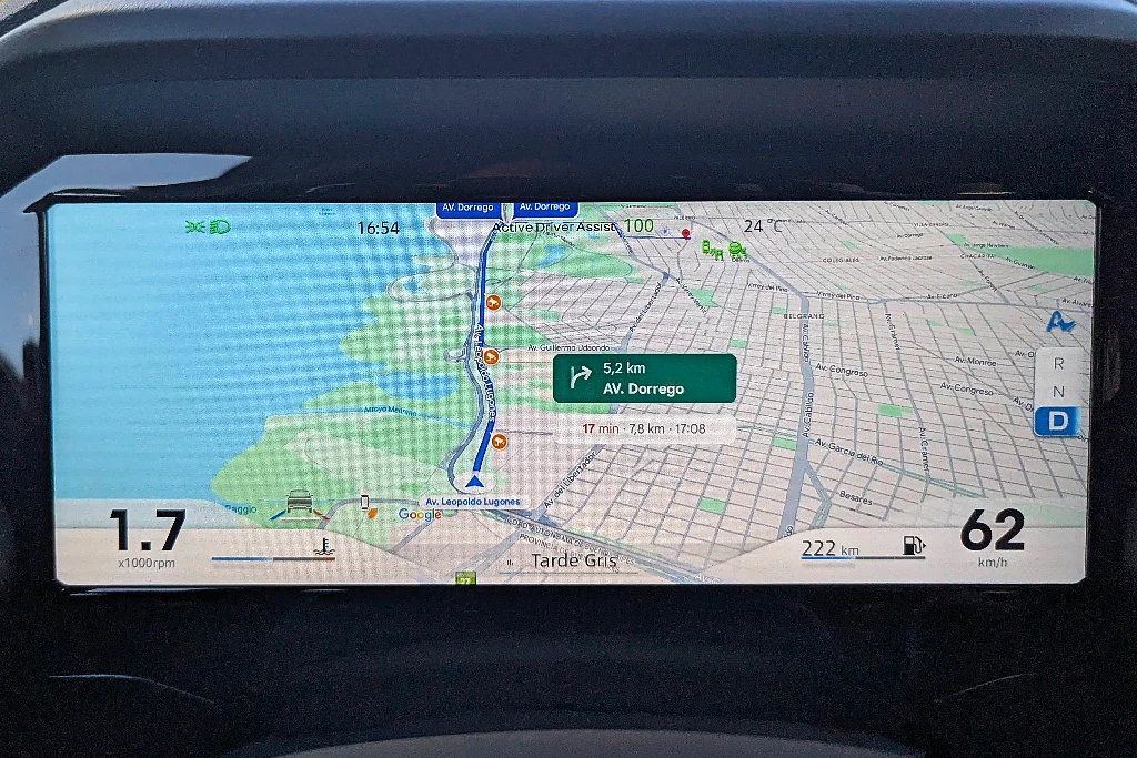 También hay una pantalla para el conductor, que oficia de tablero. Es nítida y muy generosa, pero está algo desperdiciada, ya que (salvo la duplicación del mapa del celu) no ofrece la posibilidad de jugar con varias vistas: solo hay un par y poco atractivas. Al menos, hay un head up display para mejorar las cosas.