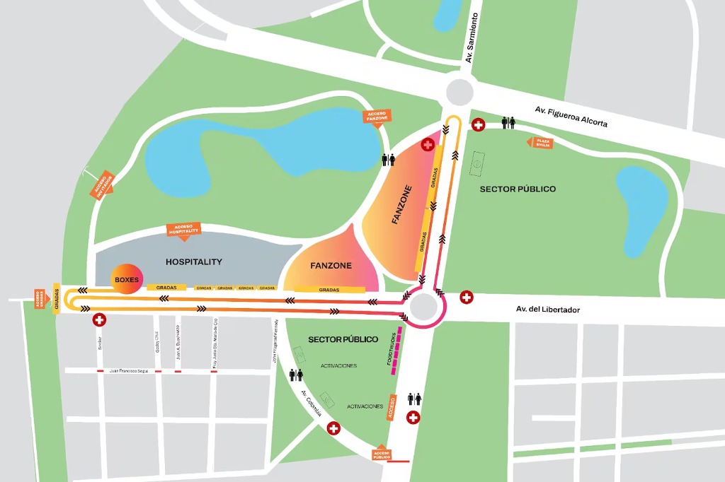 El circuito de 2 km por el que correrá Franco se montará en las Avenidas del Libertador y Sarmiento, con eje en el Monumento a los Españoles.